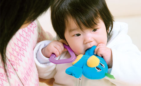 幫寶寶清潔牙床的時候,一不小心,被寶寶咬了一口。小心翼翼的掰開小嘴巴,用手指一摸,怎麼是硬硬的小突起?哇!原來是寶寶長牙了啊! 由於營養狀況改善,每個寶寶的長牙時間有很大的差異,有的在5、6個月大就長出牙齒,有的過了10個月還不見蹤跡。不過,基本上,只要在一歲前長牙就算正常,如果寶寶還沒長牙,請不要緊張,請耐心等待!如果一歲以後仍未長牙,這時候就必須請教牙醫,找出真正的原因。 一般來說,乳牙有固定的成長順序,多從下顎的第一門齒開始長起,緊接著是上顎第一門齒、第二門齒陸續冒出牙痕,下顎第二門齒與下顎犬齒也會開始萌生。 寶寶長牙後,記得在寶寶吃東西後和睡覺前用紗布或棉花棒幫他輕輕擦拭。每次吃完東西後最好喝些白開水來清潔口腔。長牙這段期間,寶寶特別喜歡拿東西又舔又啃的,你可以選購無毒、易保持乾淨的嚙咬玩具或固齒器給他,來刺激牙根的發育。嬰兒餅乾不但可以當零食吃,藉此還可以讓他練習牙齒咬食食物的技巧喔!